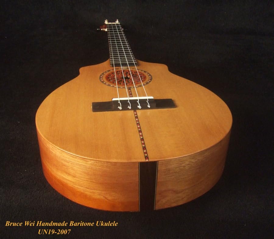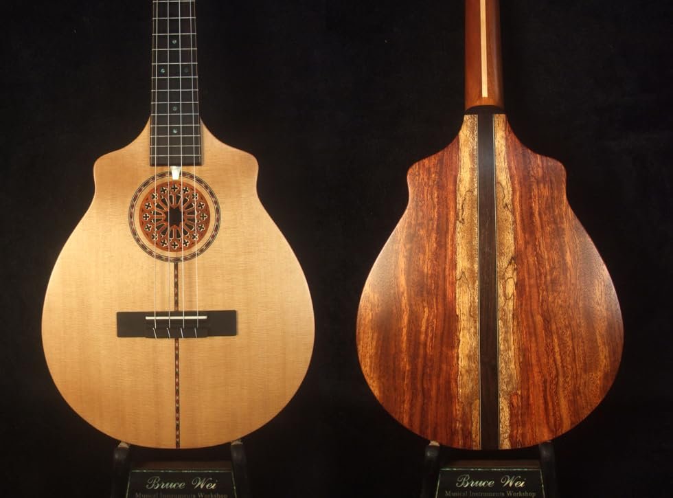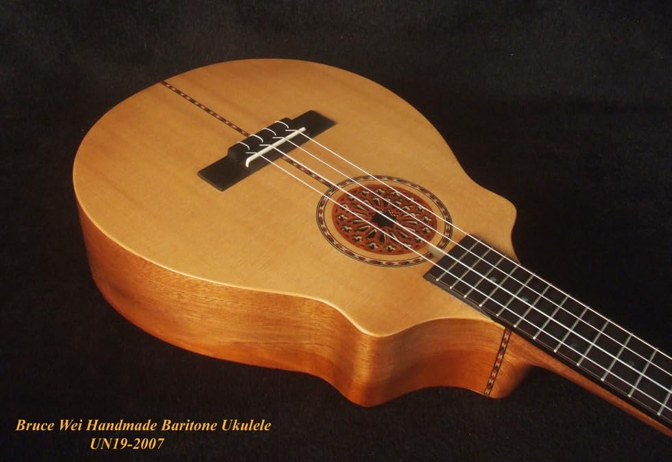 Bruce Wei Handmade Spruce, Spalted Rosewood 4 String Baritone Ukulele, Soft-bag UN19-2007
