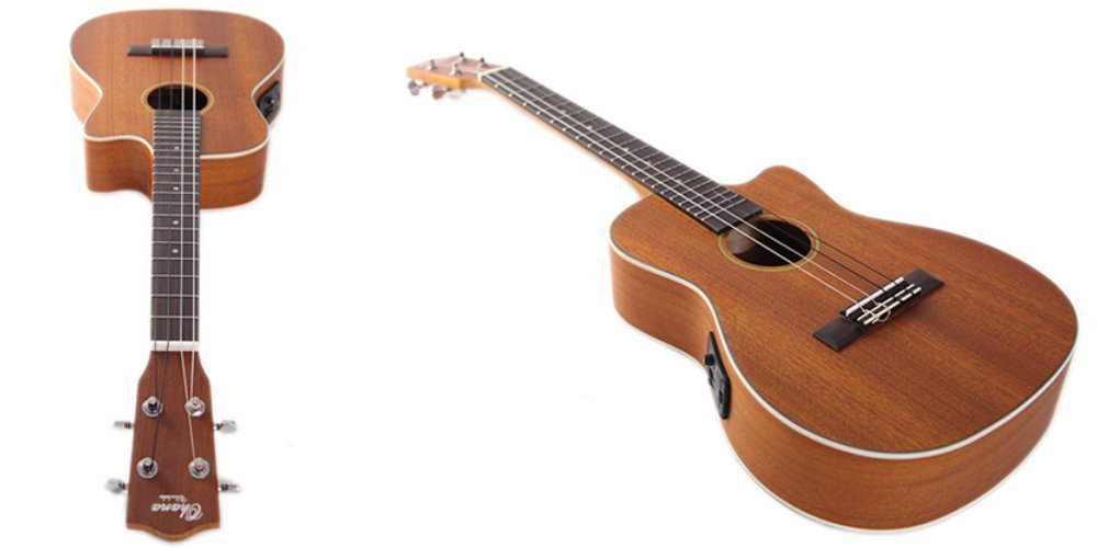 Details: OHANA BARITONE UKULELE, 21-FRET, CUTAWAY, SOLID MAHOGANY TOP,LAMINATED MAHOGANY BACK/SIDES, DIE-CAST GEARED TUNERS, EQ, GHS